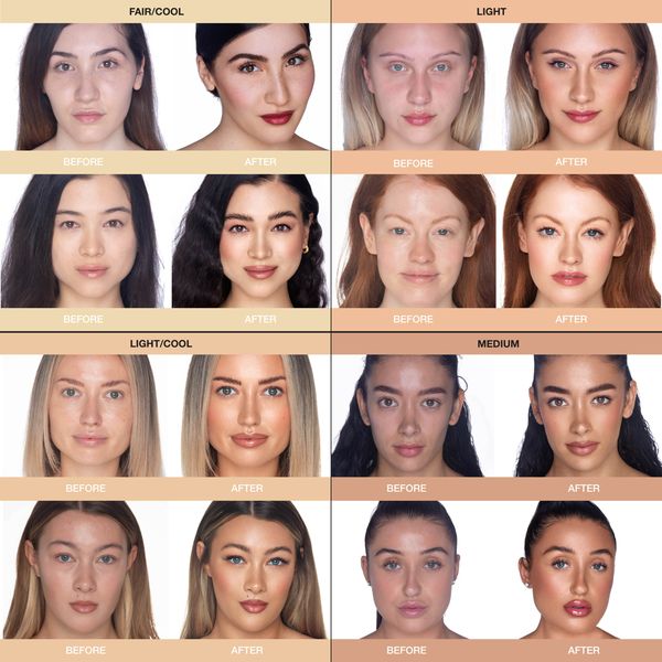 Doe een kleine hoeveelheid op de vingertoppen/borstel en breng egaal aan op het gezicht/ hals.